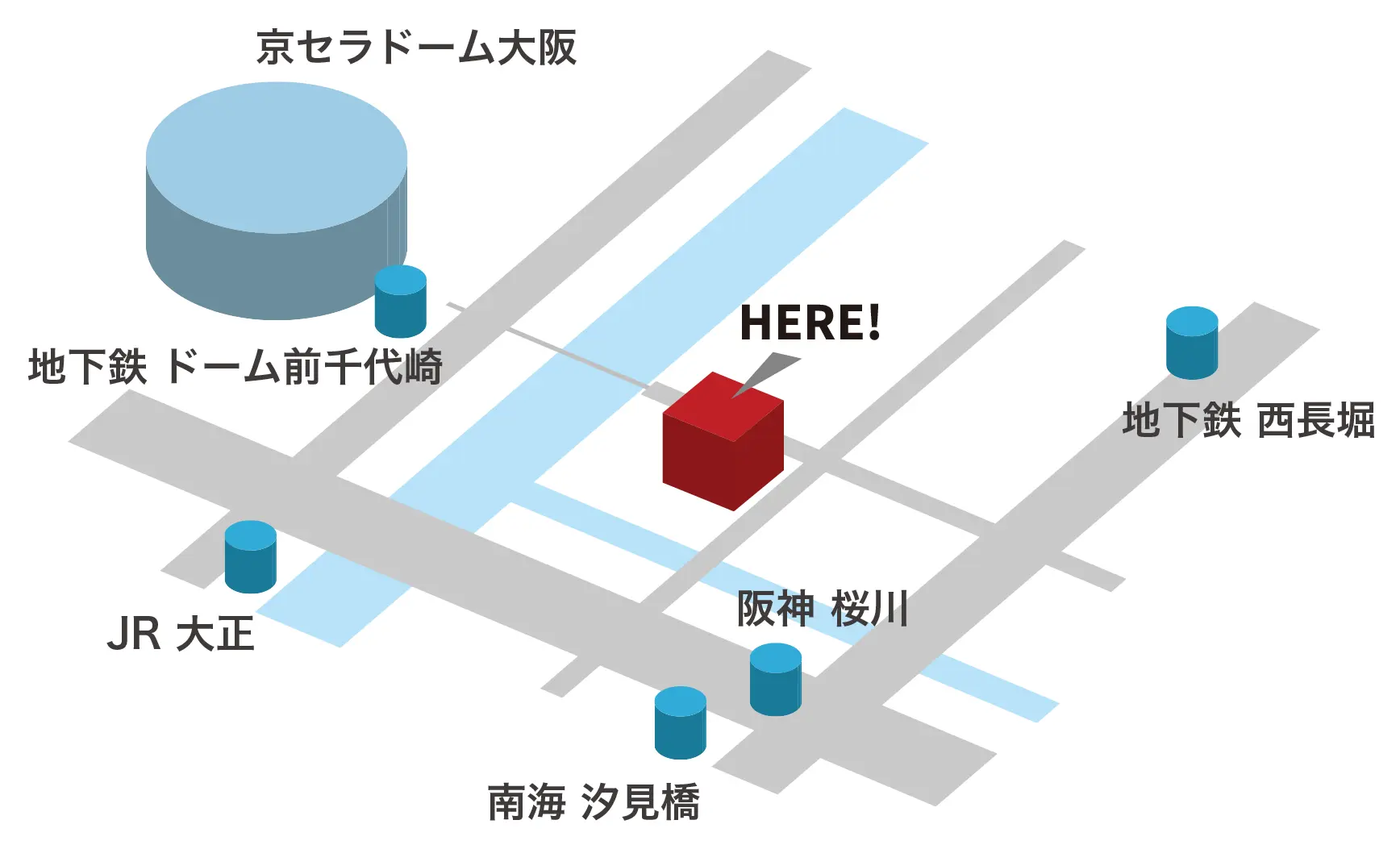 スタジオは大阪市内の好立地、鉄道も複数の路線を選べます
