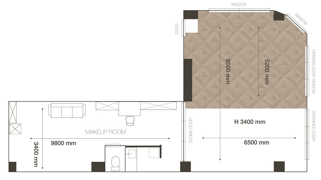 - 家具類は、スタジオに常設されていない場合があります。ご利用前にご確認ください。